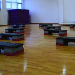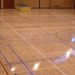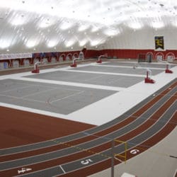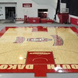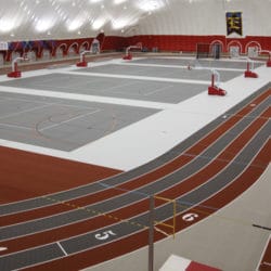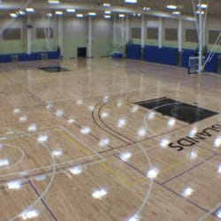 Sports center featuring four maple gym floors, four synthetic sports floors, a walking track, fitness room, and other multi-purpose room flooring solutions.